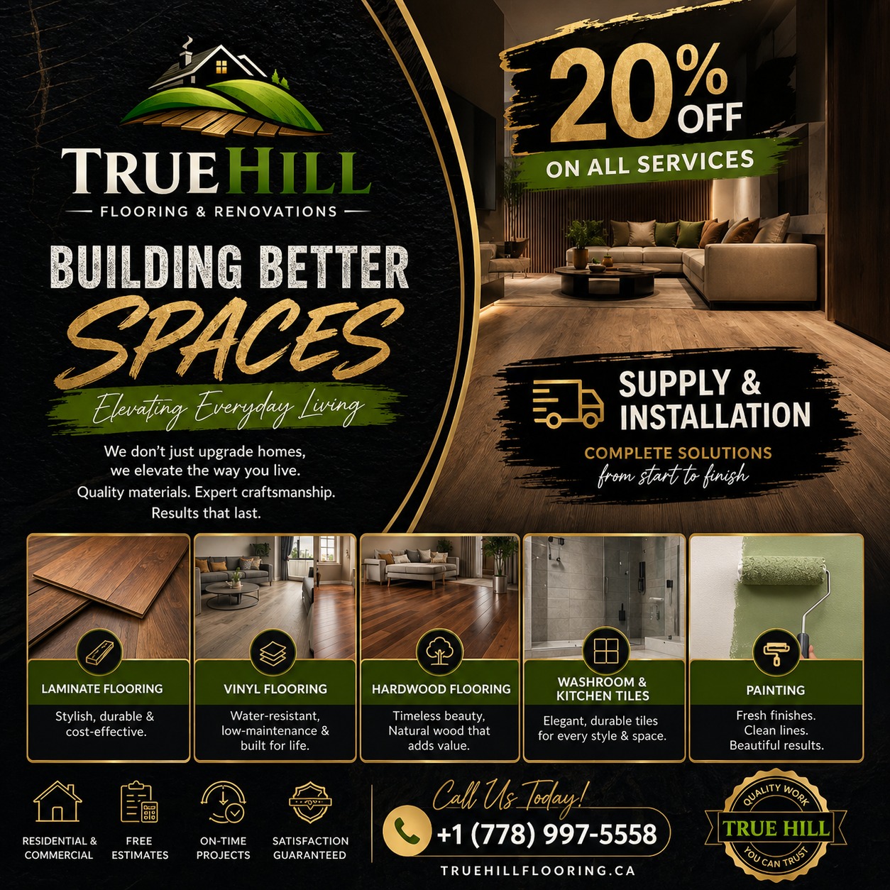 At TrueHill Flooring & Renovations, we specialize in transforming homes and commercial spaces with high-quality materials and expert craftsmanship. From flooring installation to complete renovations, our team is dedicated to delivering durable, stylish, and long-lasting results you can trust.